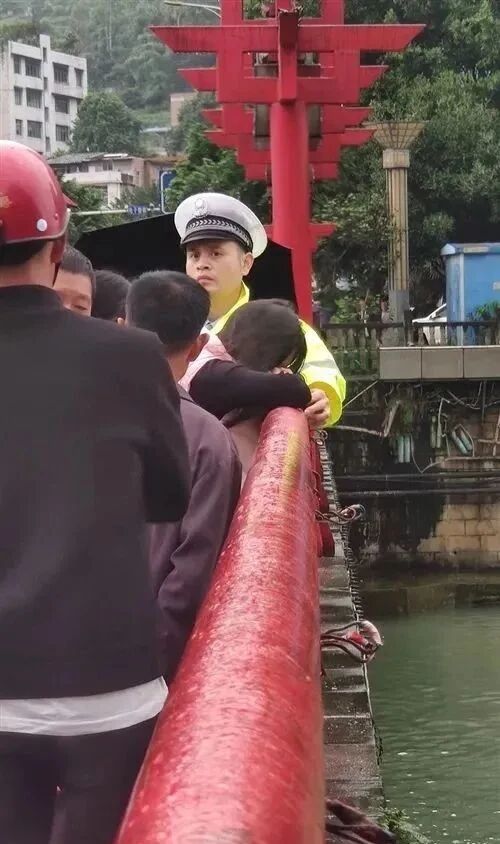 在两名交警和一位不愿意透露姓名的大哥(只知道是筠连七里半的人)的帮助下,成功将欲跳河的年轻女子救下。